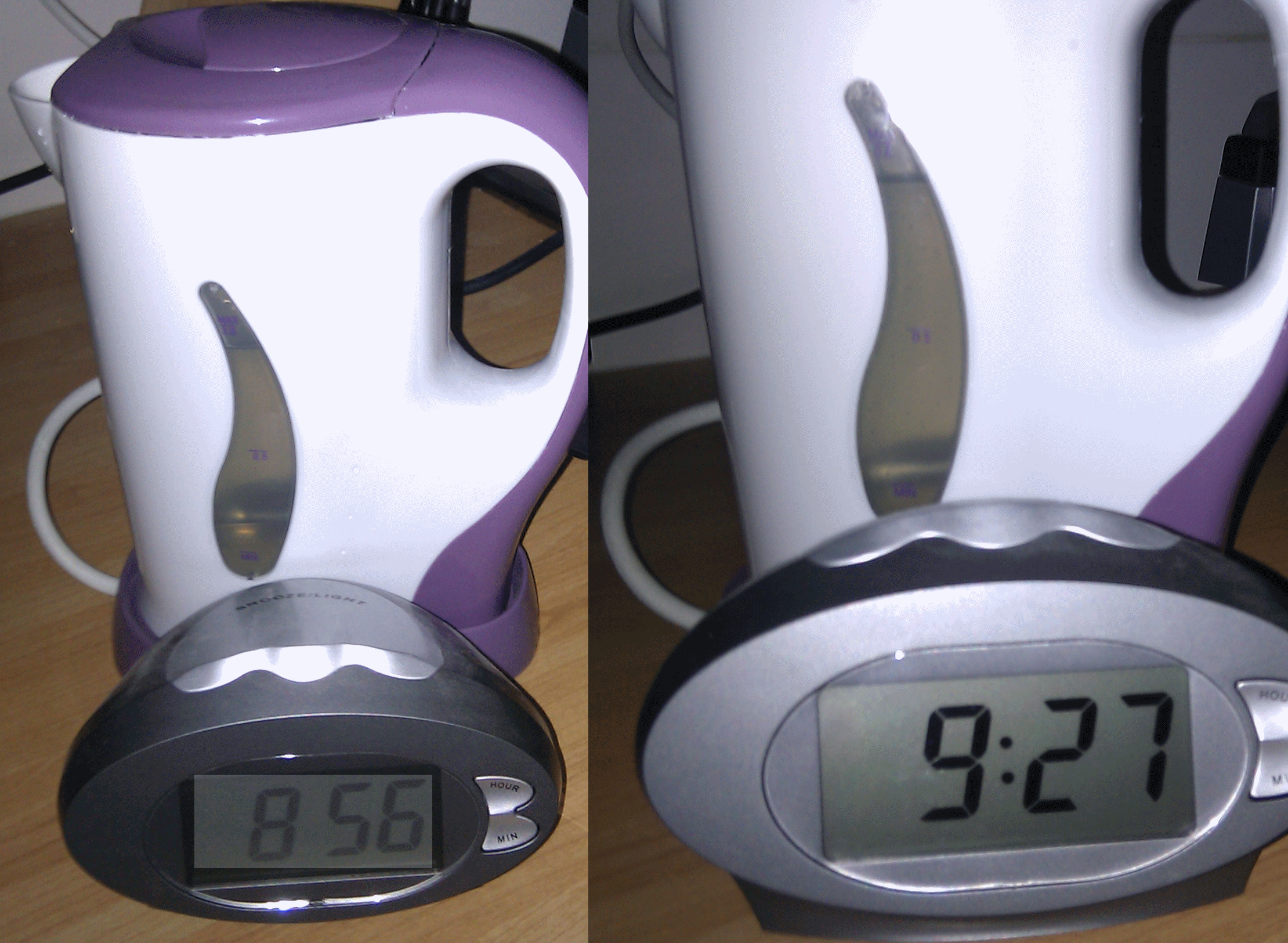 Widely televised, the kettle failed to boil during the eight hour show, due, it has been proposed, to the sheer number of people watching. Further anecdotal evidence has been reported in the case of terminally lazy Mirabelle Jiff of Milton Keynes, UK, who, according to witnesses, waited for something to happen to her for so long she lived to the grand old age of 723 (unsubstantiated).