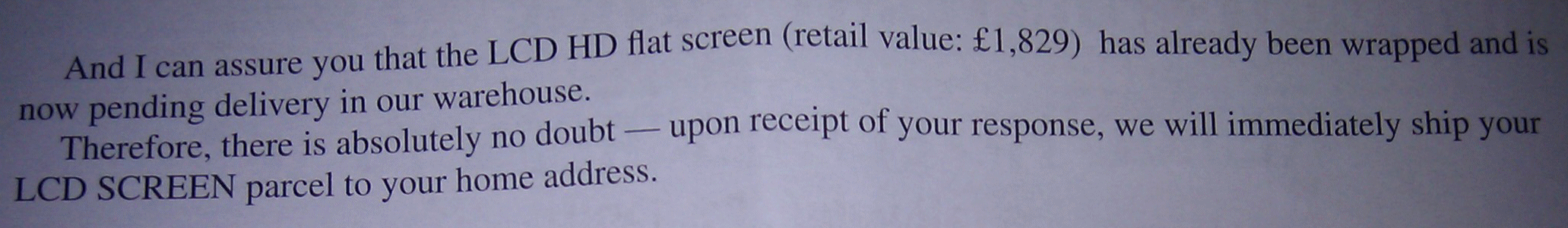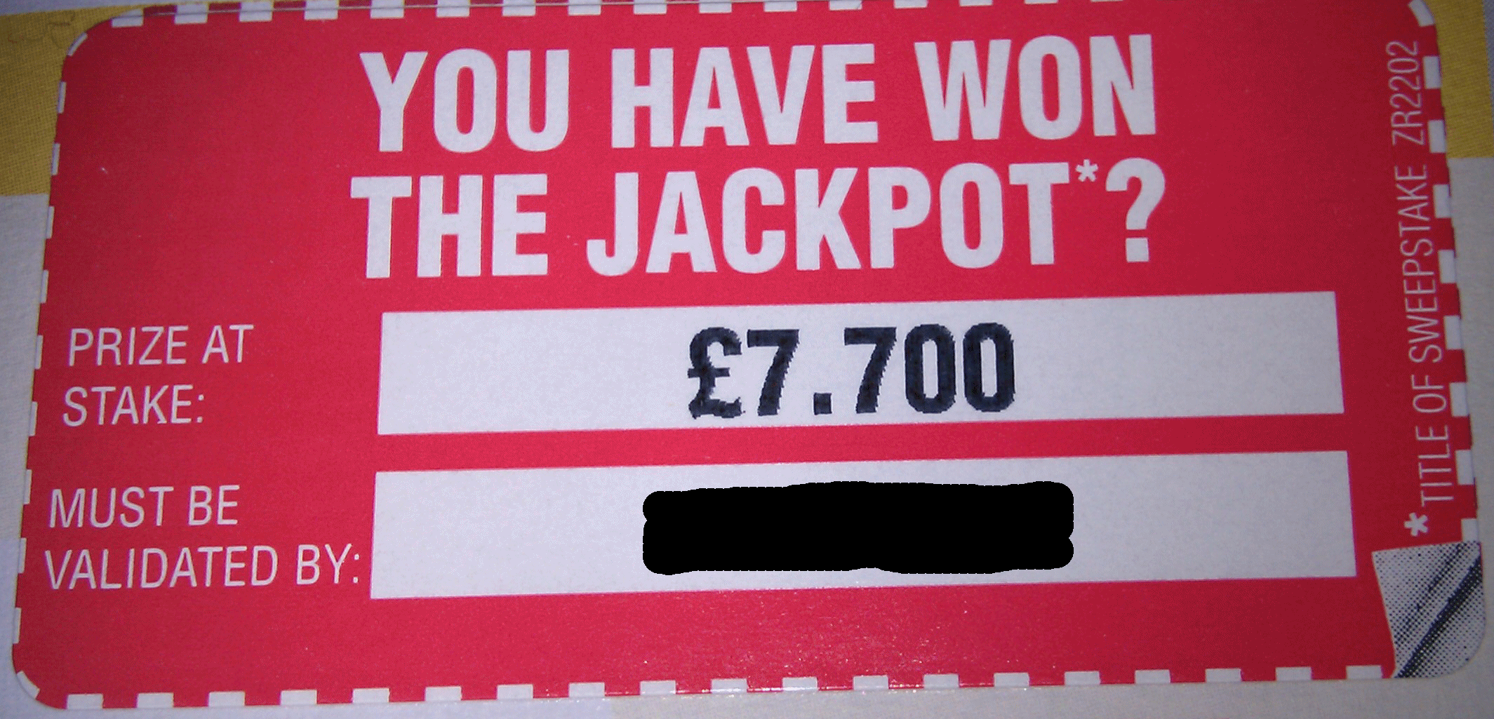 Don’t you just love those “You’ve won a prize!” letters that come through the letterbox? You know the ones – they make it very clear you’ve won a massive stereo or a games console (until you read the very small print). One of these arrived on the doorstep the other day. I thought I’d analyse it for a bit of fun.