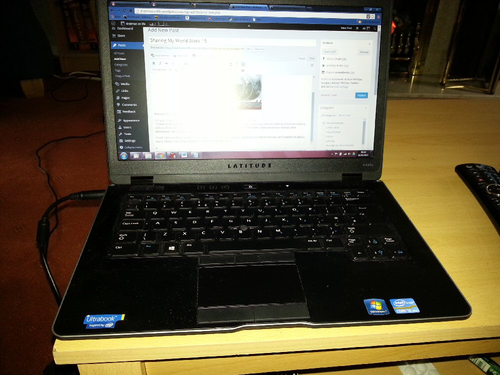 I’ll read on anything but I always write my blog on my Dell Latitude Ultrabook. I’m not sure what the difference between a laptop and an ultrabook is. It’s actually way outside my budget but I bought it from Dell Outlet, where people buy stuff and then immediately send it back so Dell resell it cheap, so £1100 became £650. Cool! It runs Windows 7.