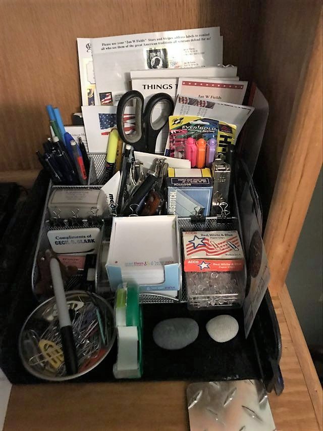So many uses, his stationery. Correspondence, drawing, pinning, stapling, sticking. It was amazing what one could do with such a collection. Virtually everything could be used to pop an eyeball, or to insert forcibly into an orifice.