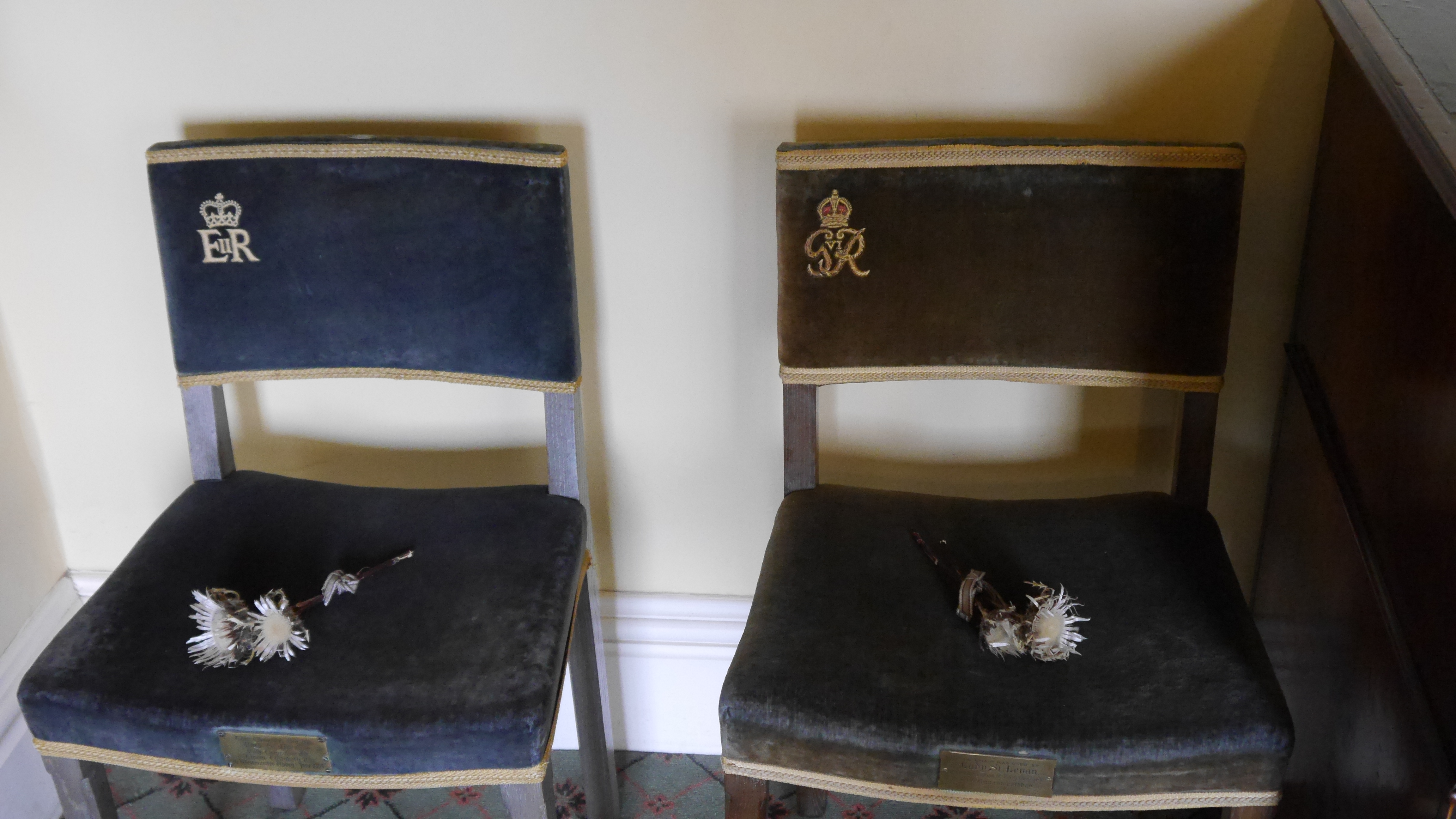 His and hers royal waiting chairs. That’s Queen Elizabeth II on the left (our reigning monarch) and on the right, presumably her dad, King George VI.